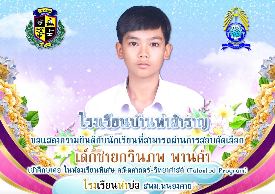ขอแสดงความยินดีกับนักเรียนที่สามารถผ่านการสอบคัดเลือกเข้าศึกษาต่อ ในห้องเรียนพิเศษ คณิตศาสตร์-วิทยาศาสต์ (Talented Program)