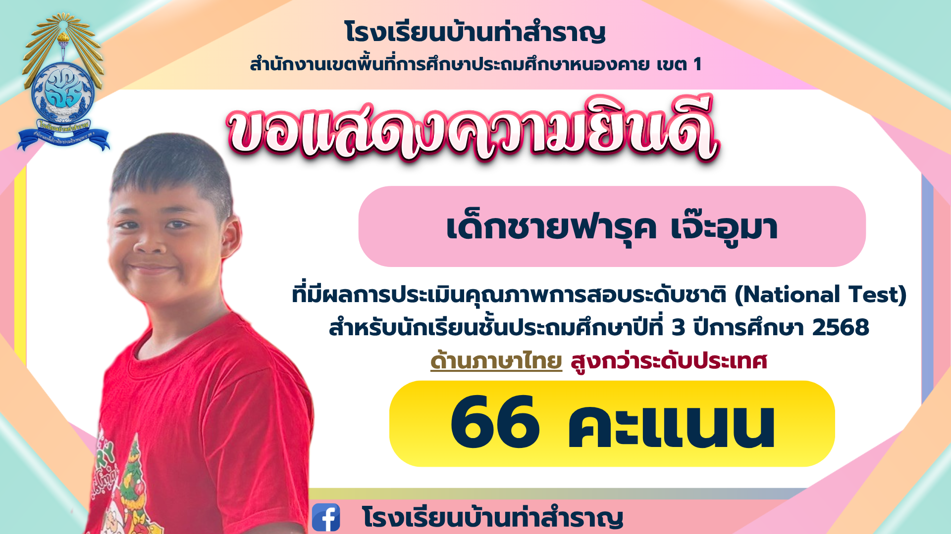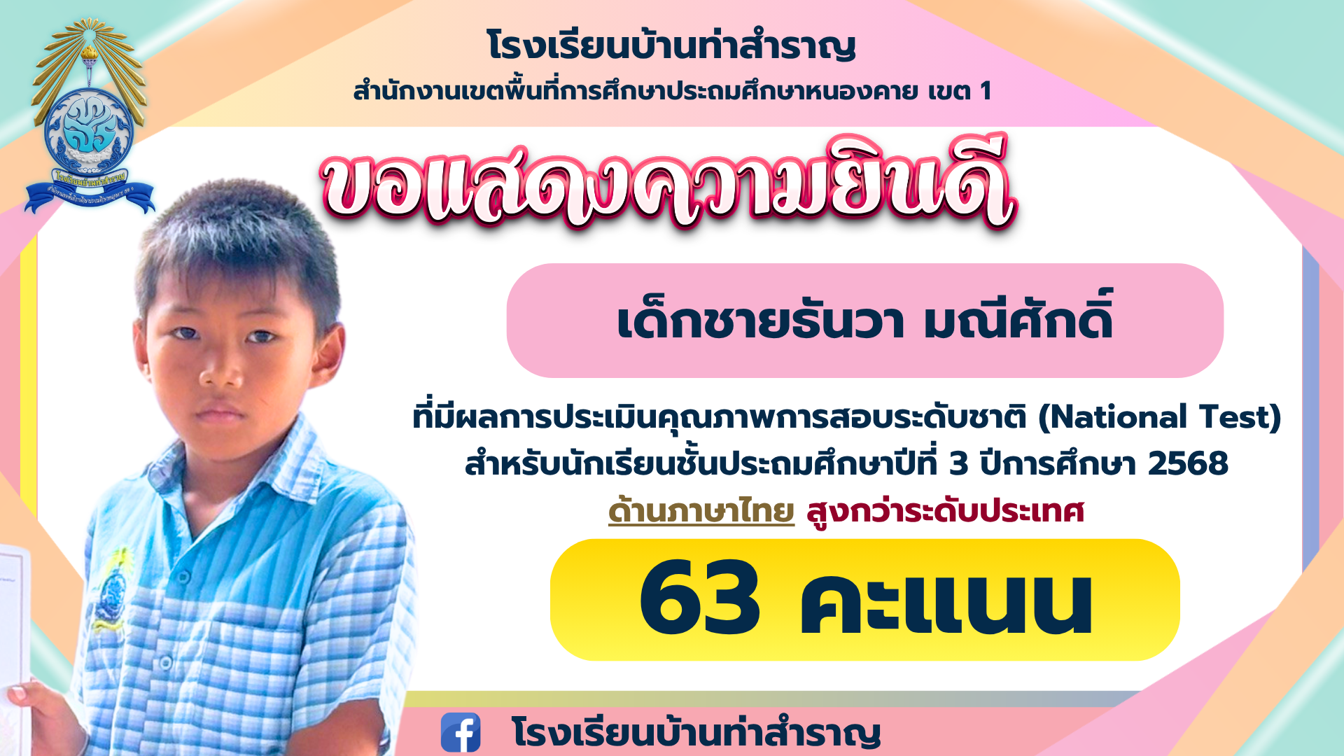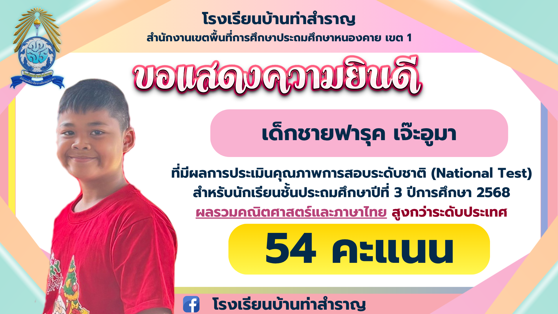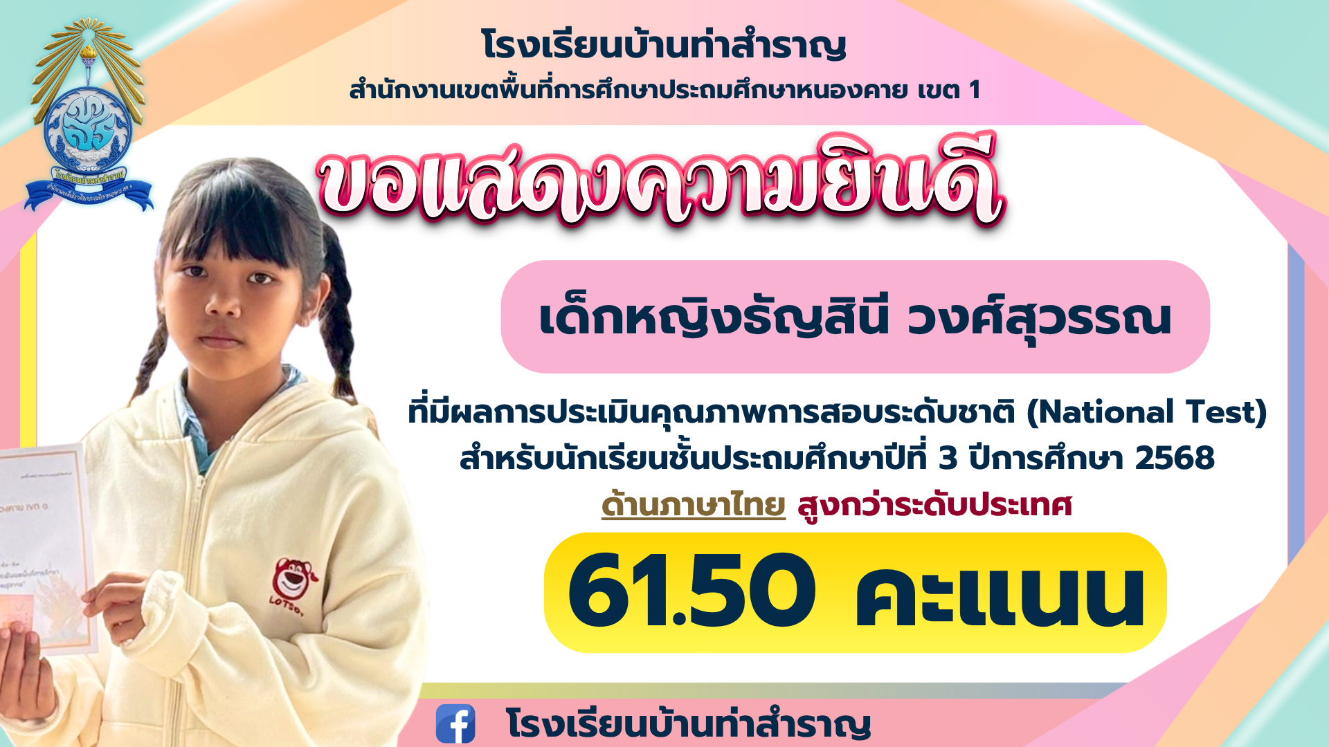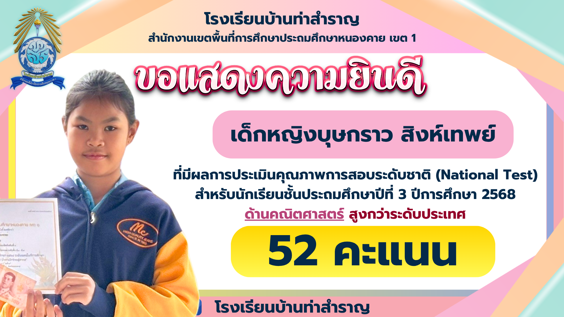 ขอแสดงความยินดีกับนักเรียนชั้น ป.3 ที่มีผลการทดสอบ NT ปีการศึกษา 2568