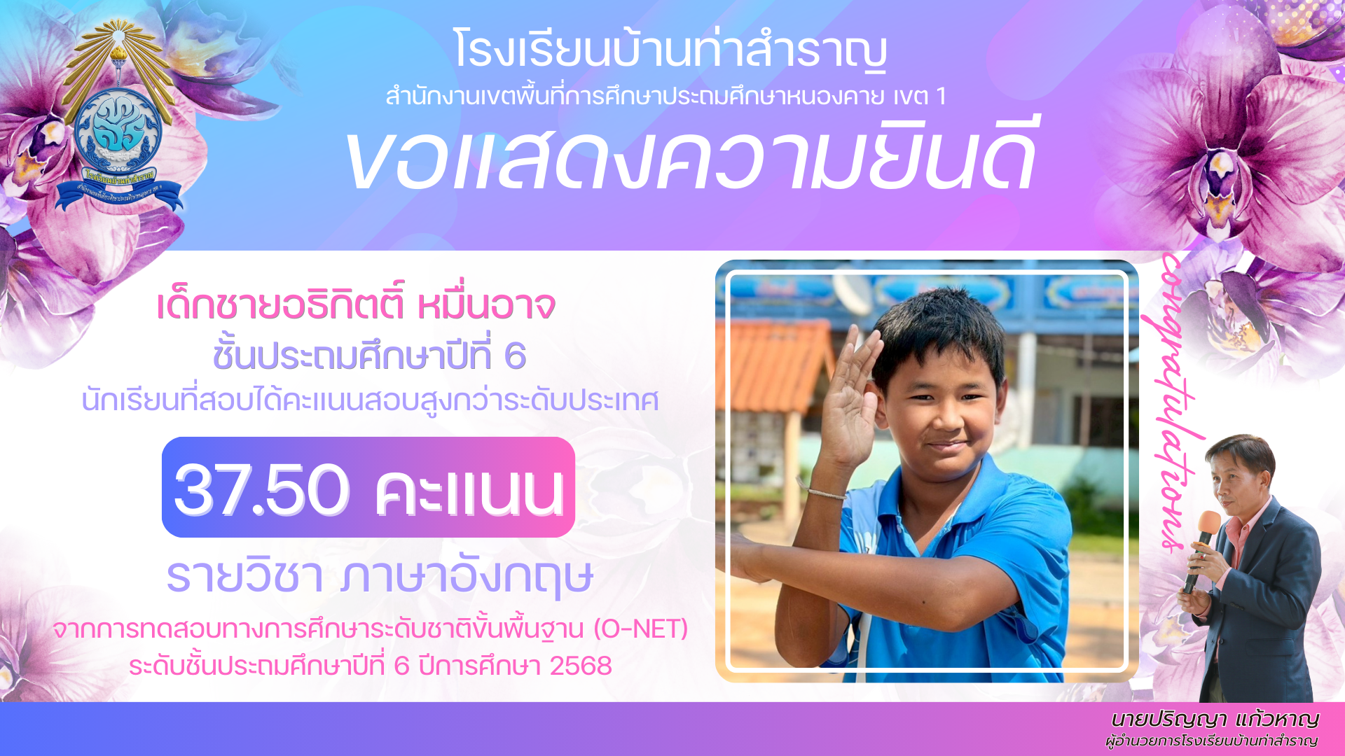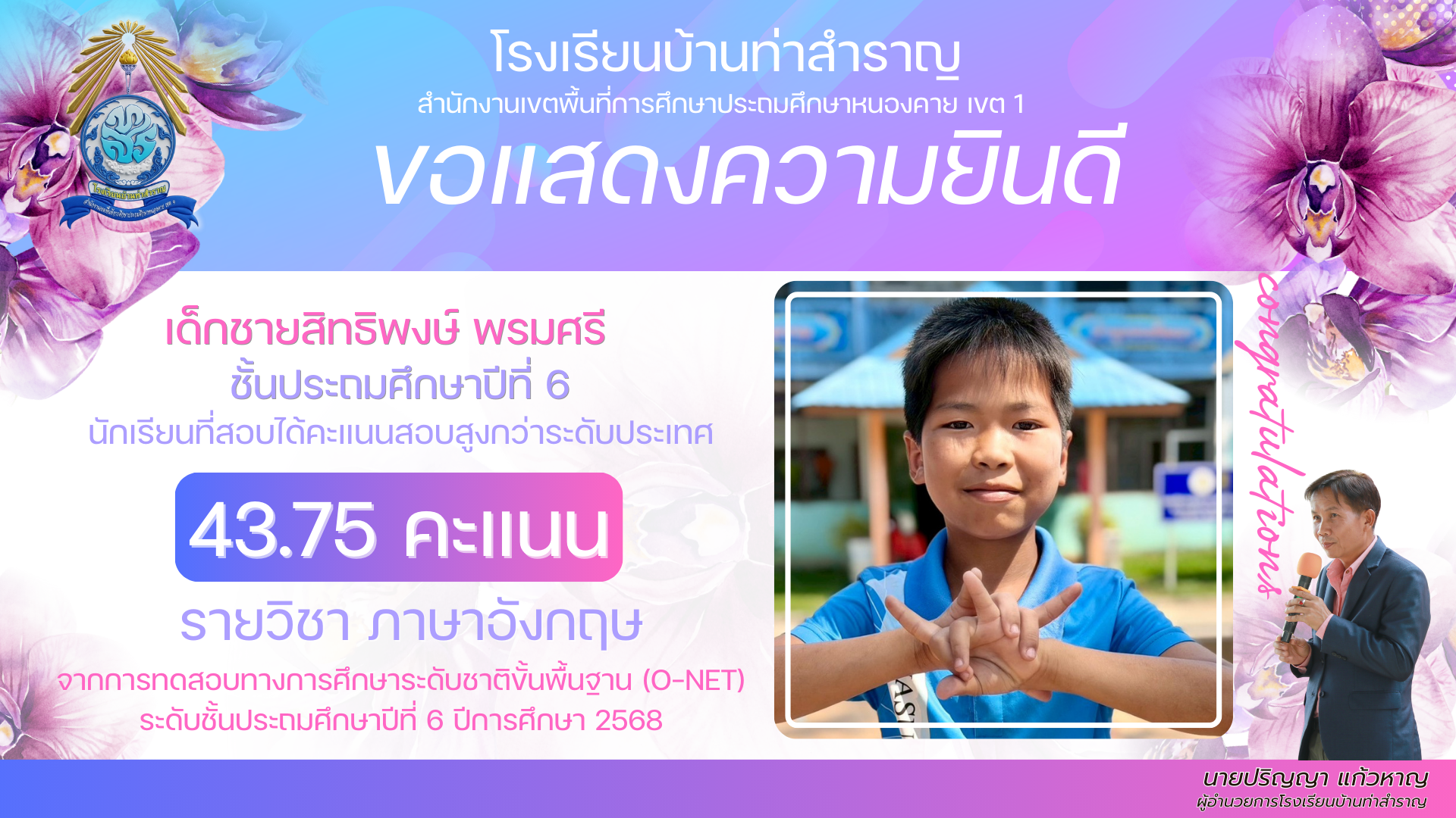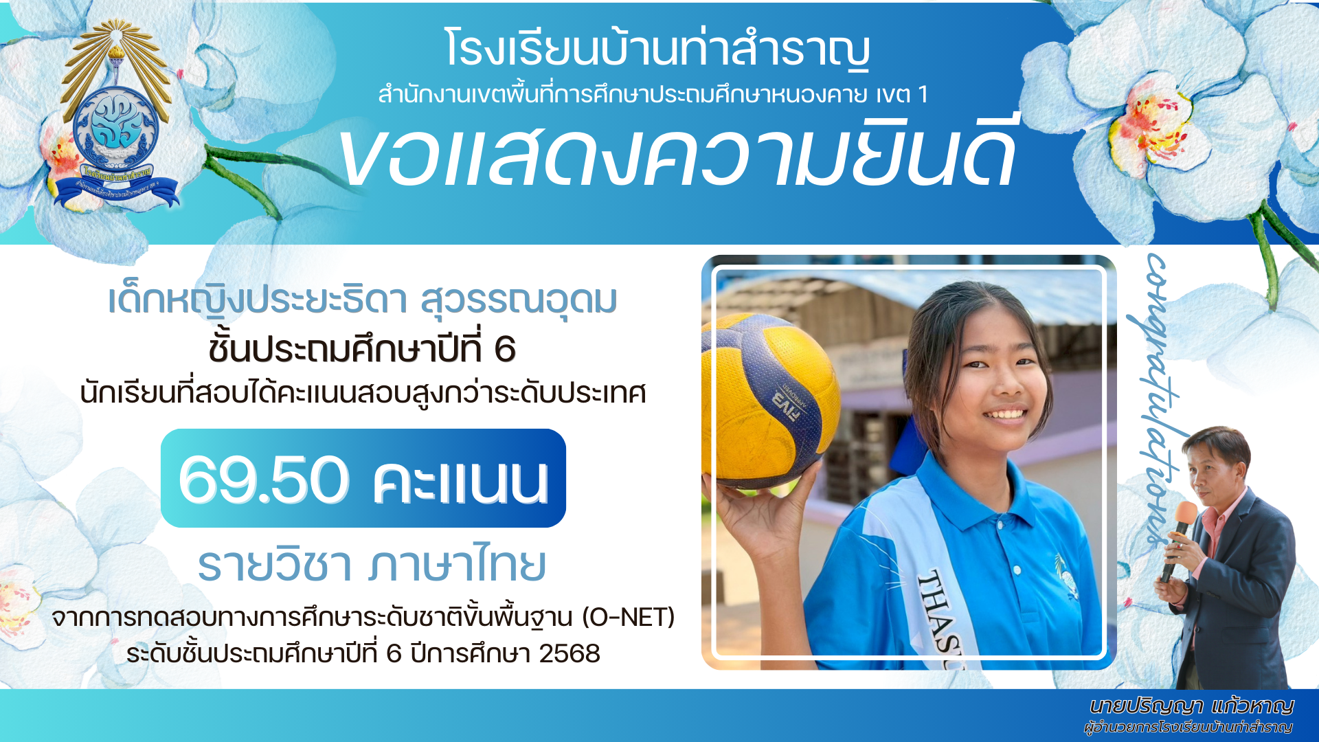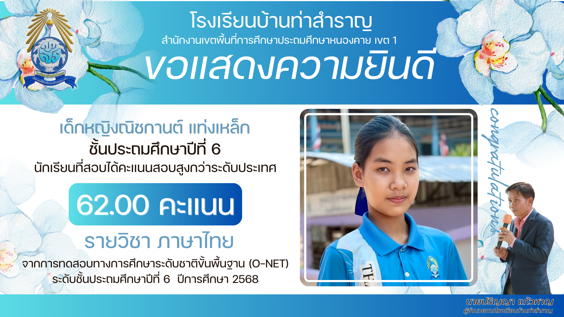 ขอแสดงความยินดีกับนักเรียนชั้น ป.6 ที่มีผลการทดสอบ O NET ปีการศึกษา 2568 สูงกว่าระดับประเทศ