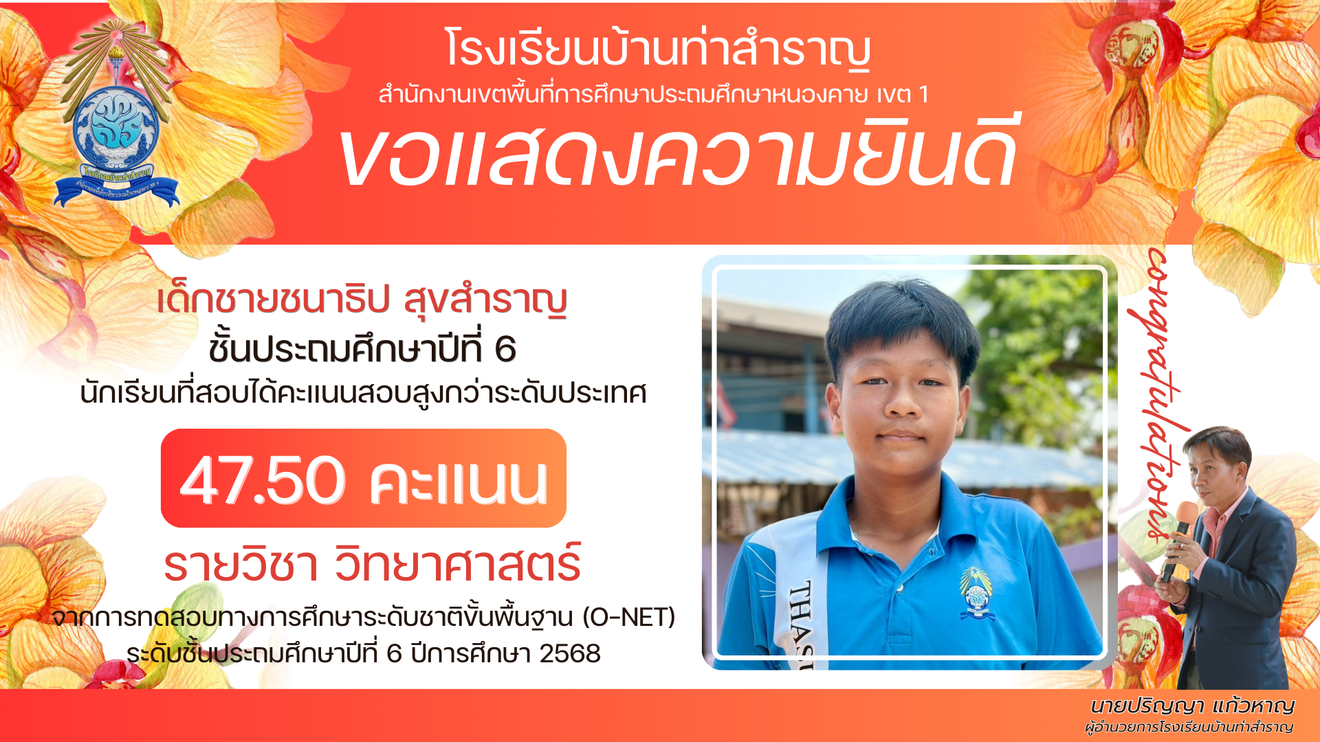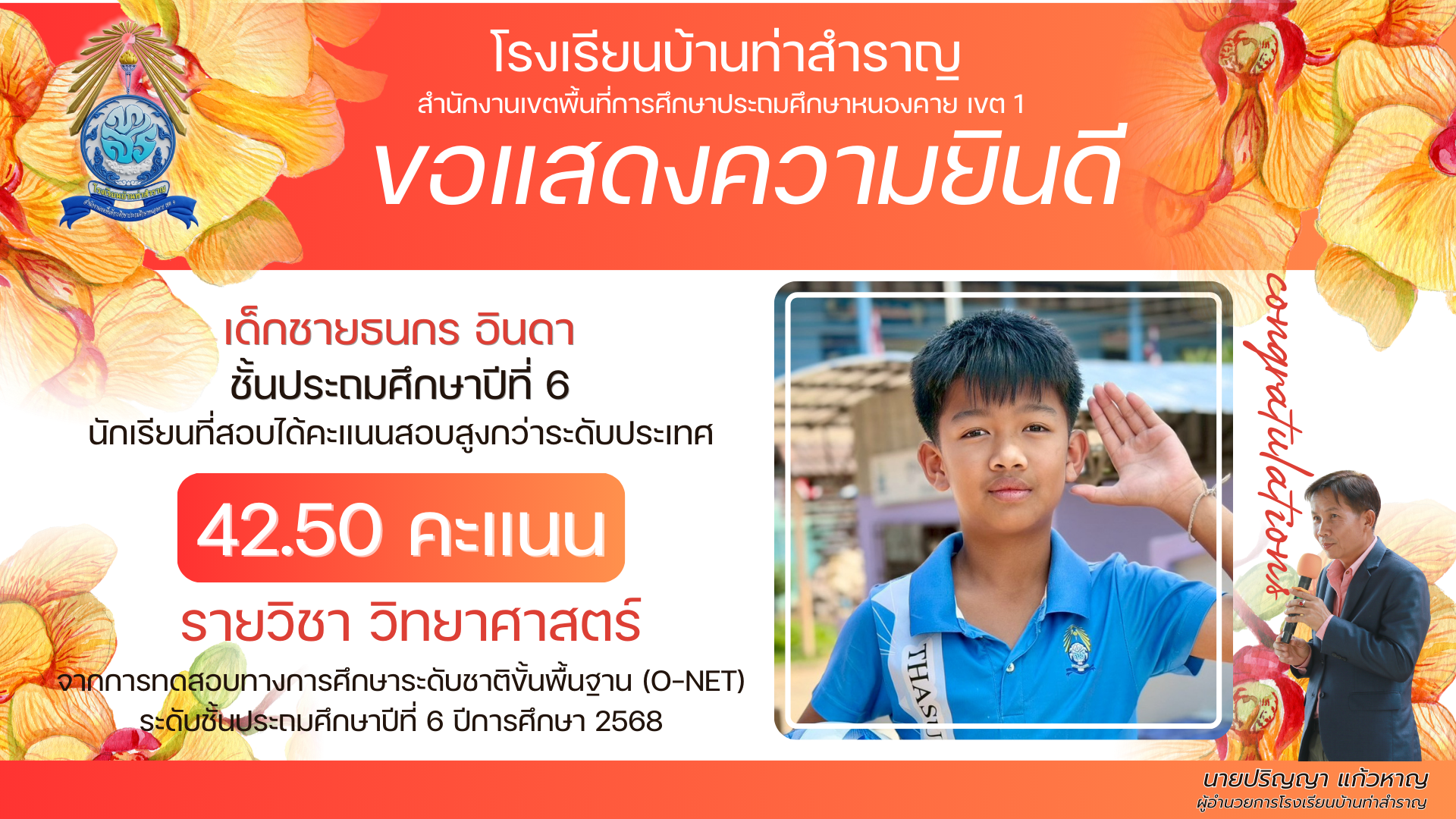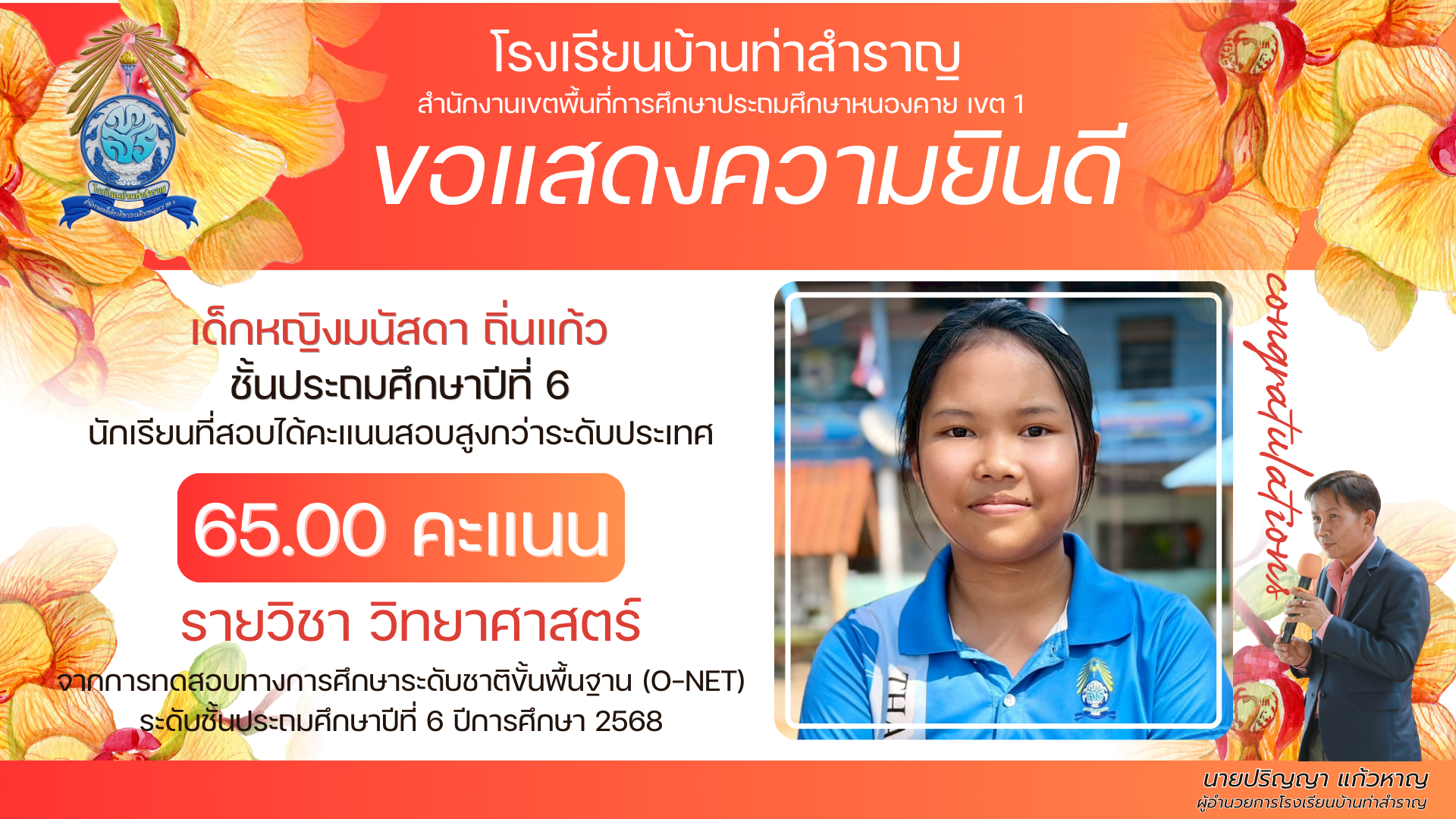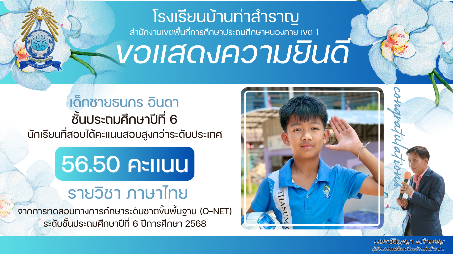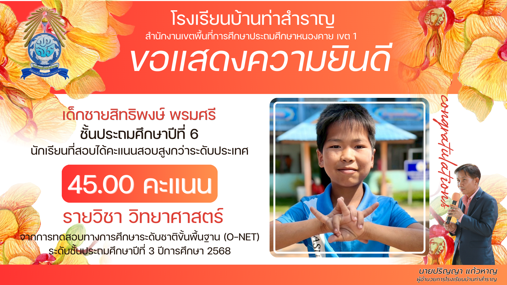 ขอแสดงความยินดีกับนักเรียนชั้น ป.6 ที่มีผลการทดสอบ O NET ปีการศึกษา 2568 สูงกว่าระดับประเทศ