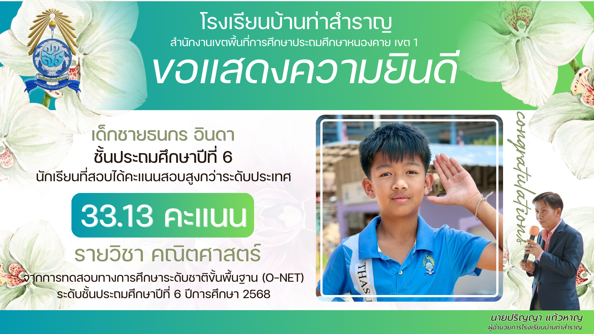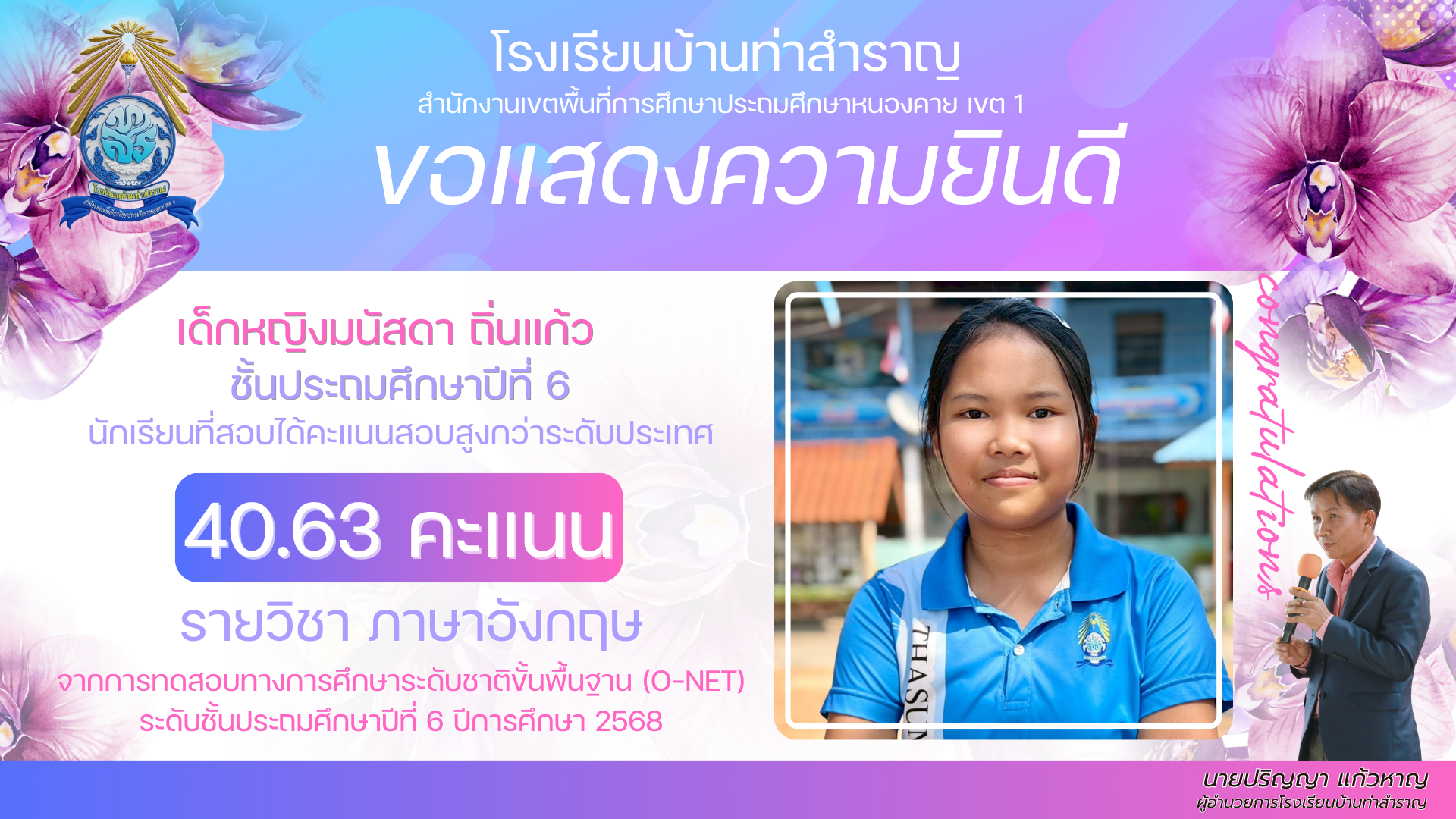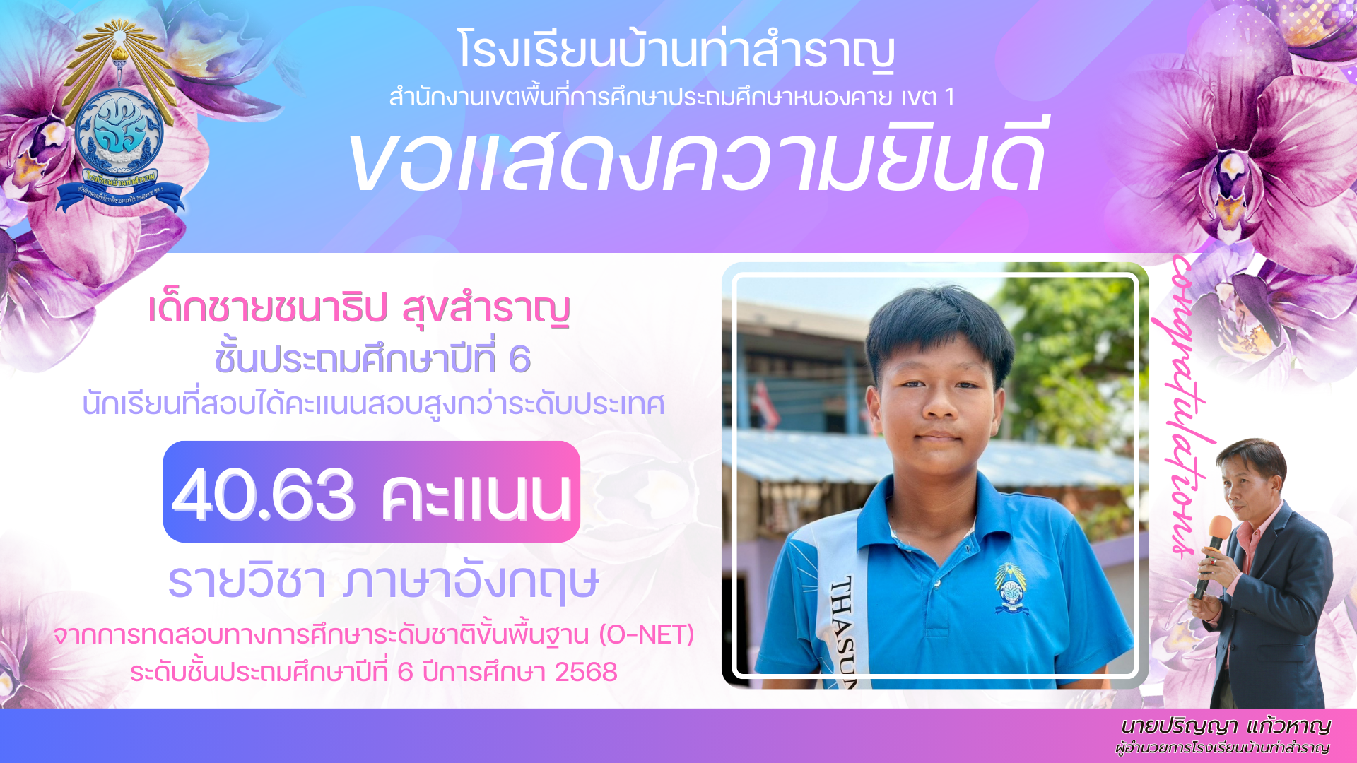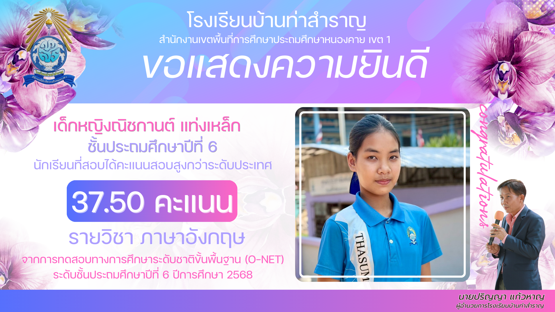 ขอแสดงความยินดีกับนักเรียนชั้น ป.6 ที่มีผลการทดสอบ O NET ปีการศึกษา 2568 สูงกว่าระดับประเทศ